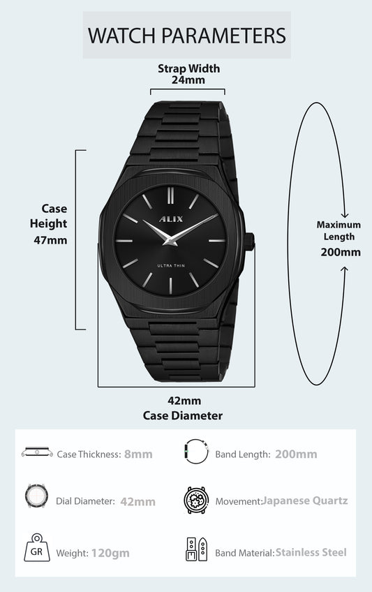 AL2912 Black Steel Strap Analog Watch