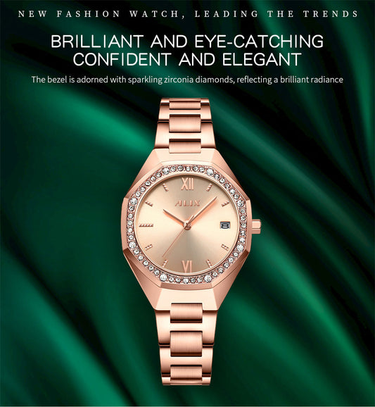 AL2531 Rosegold Octagonal case with diamond studded dial Analog Watch