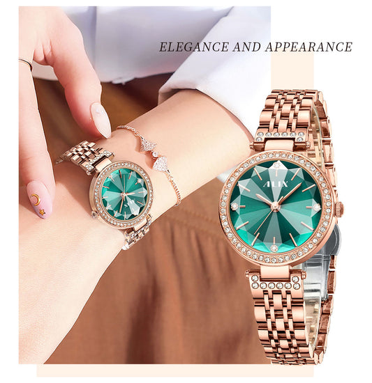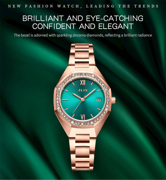 AL2532 Sparkling crystal green facet dial with rosegold strap Analog Watch