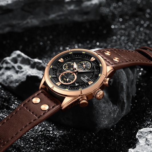 Naviforce NF8045 Brown Leather Strap Analog Watch