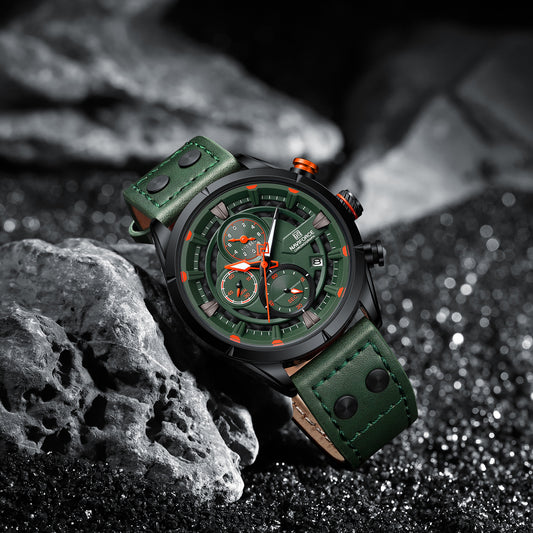 Naviforce NF8045 Green Leather Strap Analog Watch