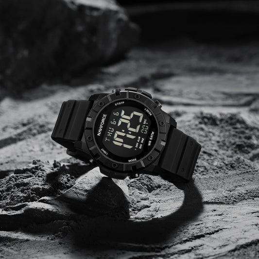 NF7110 Black LCD Display Trendy Silicone Digital Watch
