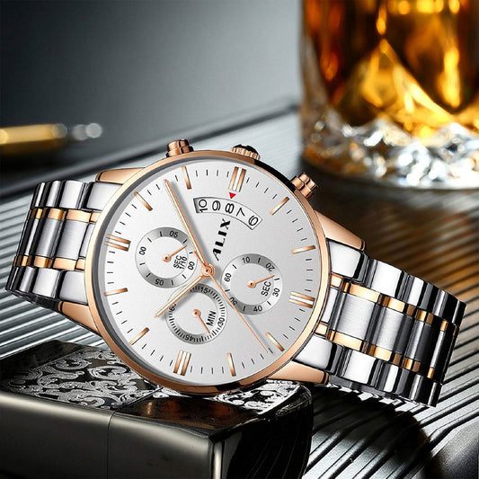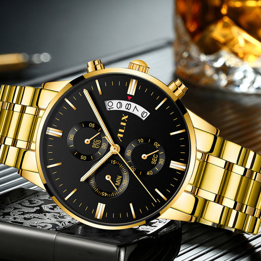 AL2309 Gold Steel Strap With chronograph Dial men's Analog Watch