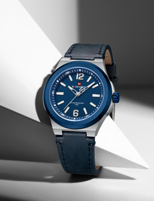 Naviforce NF9233 Blue and silver with leather strap Analog Watch