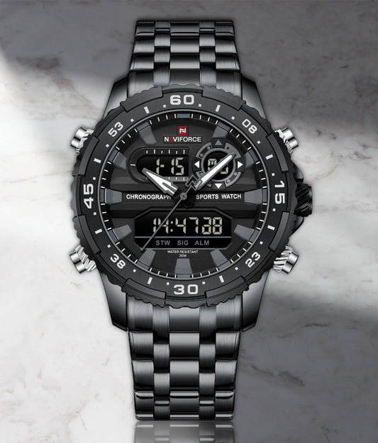 Naviforce NF9234 Versatile design all Black color Analog-Digital Watch