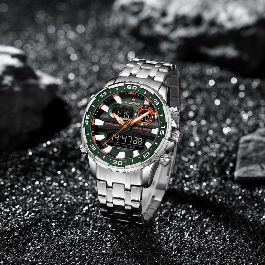 Naviforce NF9234 Versatile design Silver-Green color Analog-Digital Watch