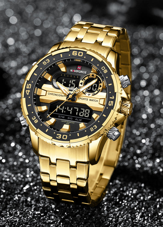Naviforce NF9234 Versatile design Gold-Black color Analog-Digital Watch
