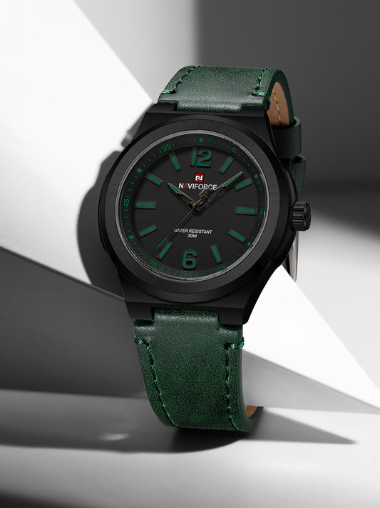 Naviforce NF9233 black and green with leather strap Analog Watch