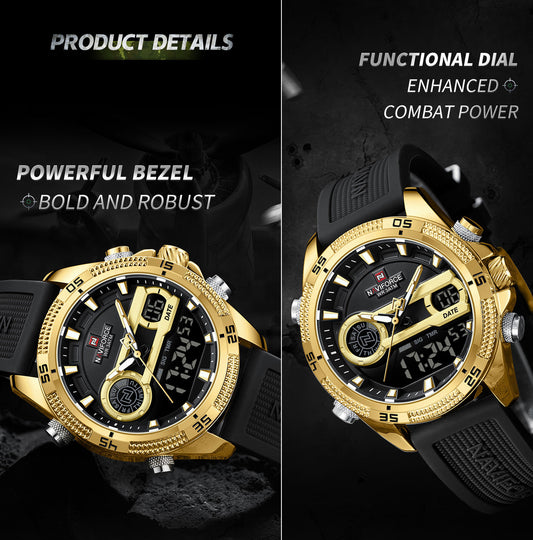 NF9223 Black-gold Silicone strap digi-analog mens watch - NAVIFORCE