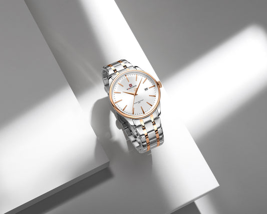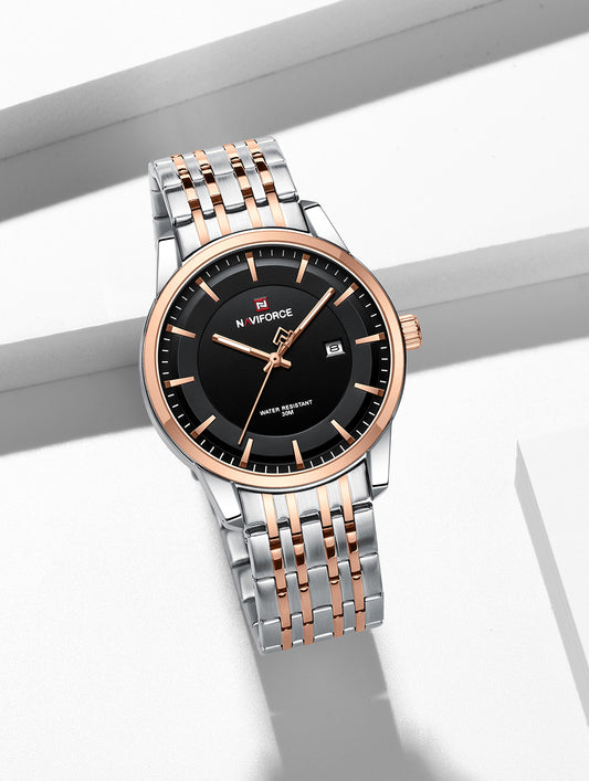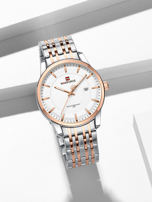 Naviforce NF9228G Silver-Rosegold High Quality strap Analog Watch