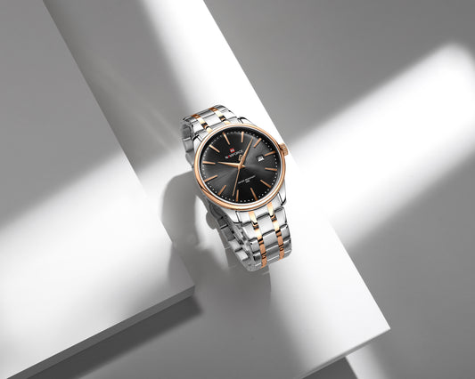 Naviforce NF9230 Silver Black Gentle Elegant Calendar Analog Watch