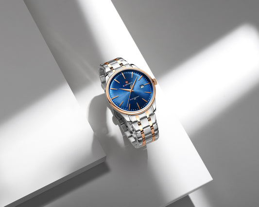 Naviforce NF9230 Silver Blue Gentle Elegant Calendar Analog Watch