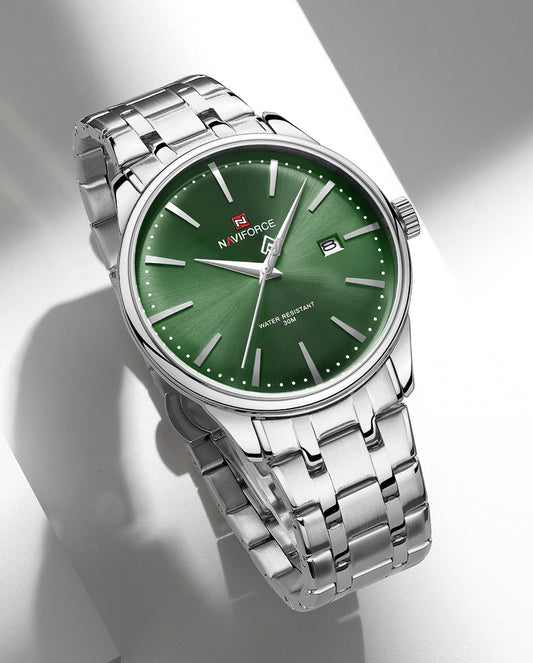 Naviforce NF9230 Silver Green Gentle Elegant Calendar Analog Watch