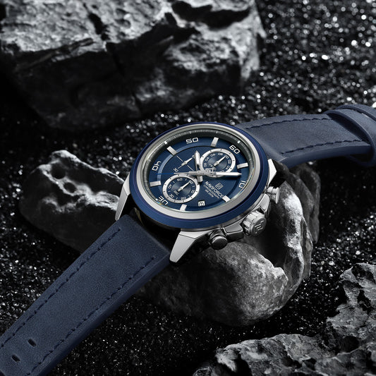 Naviforce NF8078 blue dial with blue leather strap Analog Watch