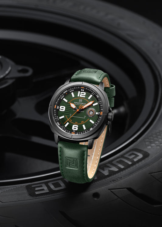 Naviforce NF8078 green dial with green leather strap Analog Watch