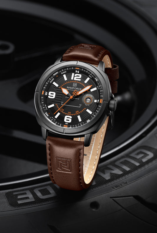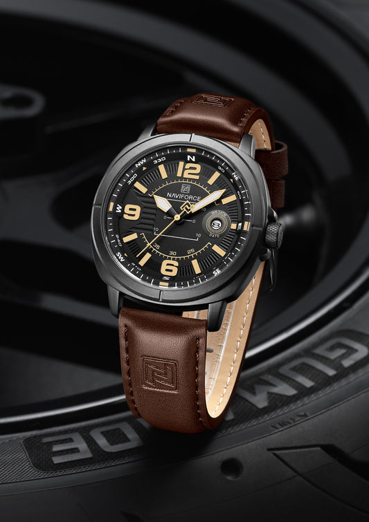 Naviforce NF8078 black dial with brown leather strap Analog Watch