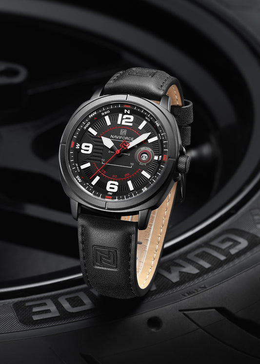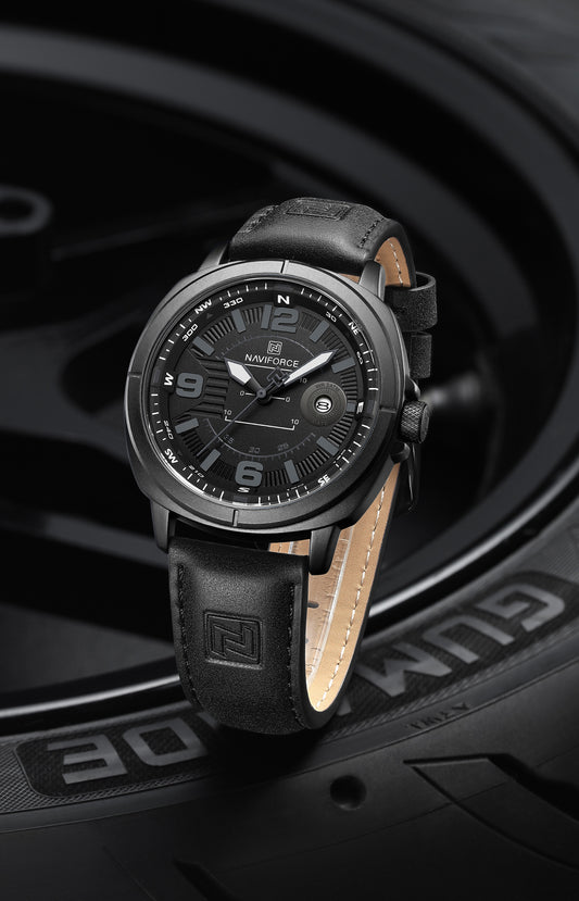 Naviforce NF8078 black dial with black leather strap Analog Watch