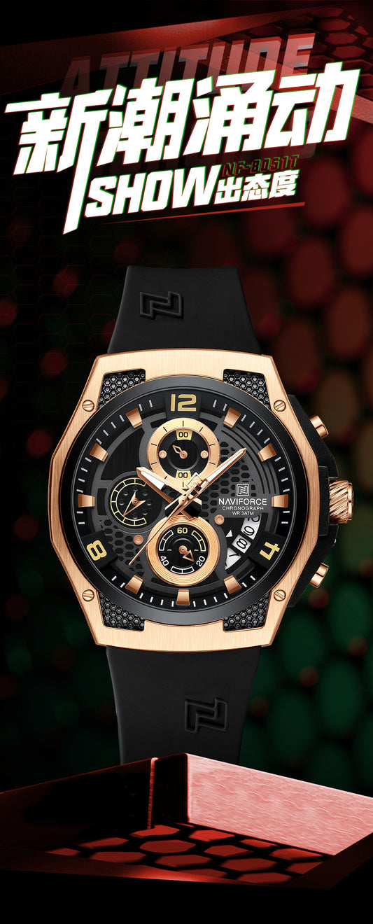 NF8052 Gold Black Chronograph watch for men - NAVIFORCE