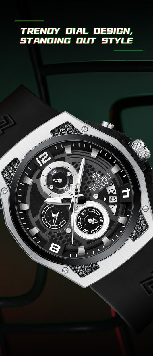 Naviforce NF8051T Silver & Black color silicon strap Analog Watch