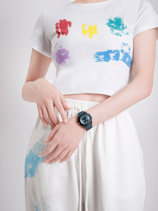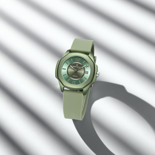 NF7107 Green Silicon Strap luminous hands Analog Watch