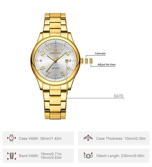 NF5059 White dial with gold Stainless Steel strap Analog Watch