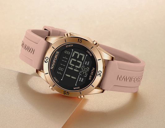 NF5054 Black&Rosegold Multifunctional LCD display Digital Watch