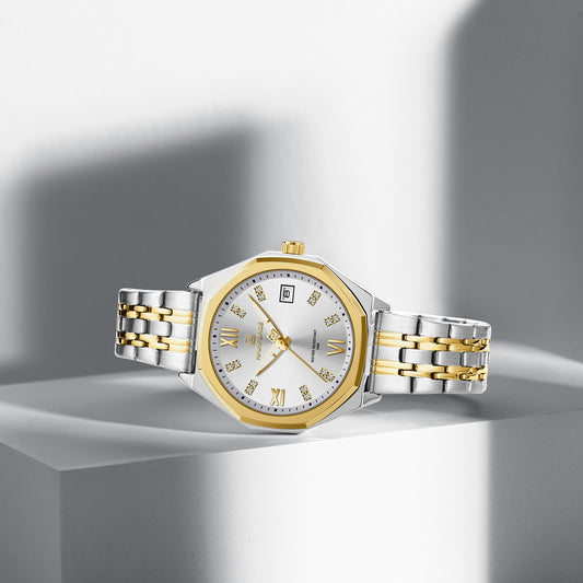 NF5050 White Dial With gold Stainless Steel Strap Analog Watch