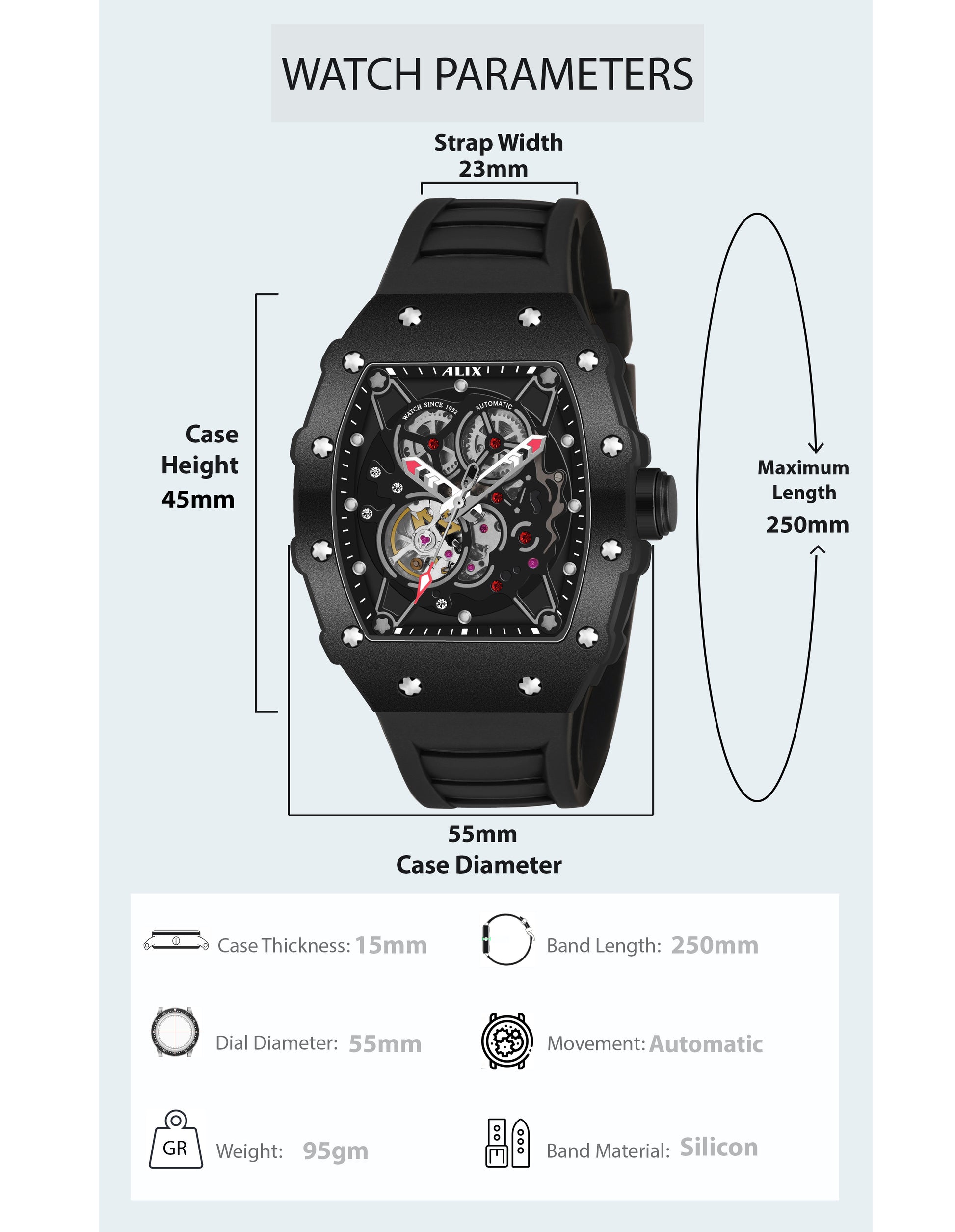 Ideal for those who appreciate modern horology and a statement-making accessory, this ALIX watch is a bold testament to innovation and style.