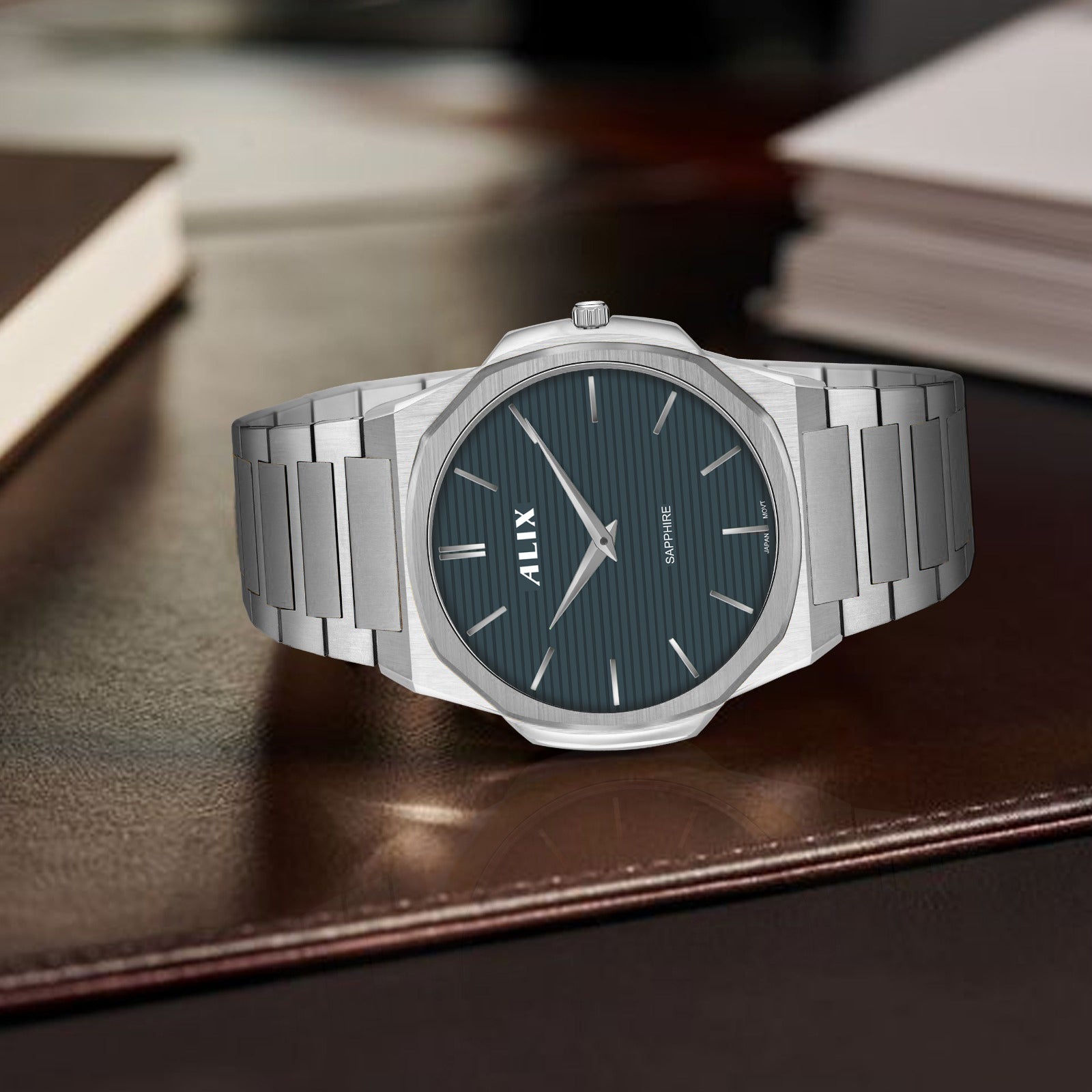 AL2913 Blue Dial With Silver Steel Strap Analog Watch