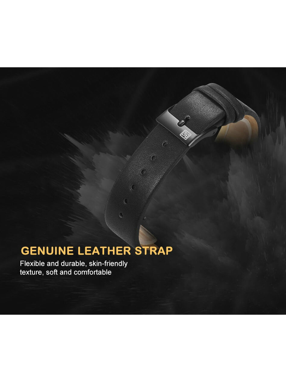 The ALIX AL3011 quartz wristwatch combines sporty functionality with sleek design elements. Crafted with a durable stainless steel case, it boasts a water resistance depth of 30 meters, making it suitable for various activities. Its reliable quartz movement ensures accurate timekeeping, while the buckle clasp offers secure wear. The leather band, measuring 24cm in length and 20mm in width, provides a comfortable fit for men. With features such as shock resistance, auto date, complete calendar, multiple time zone display, week display, and luminous hands, this versatile timepiece is ideal for those who lead active lifestyles and appreciate practicality without compromising style. Whether for sports, military use, or everyday wear, the ALIX AL3011 delivers performance and sophistication.