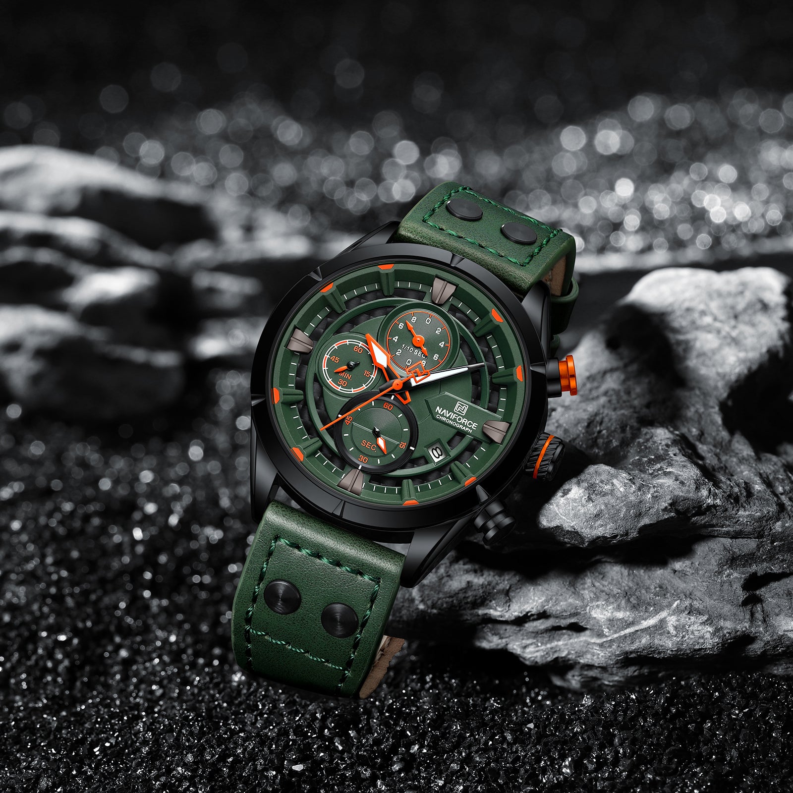 Naviforce NF8045 Green Leather Strap Analog Watch