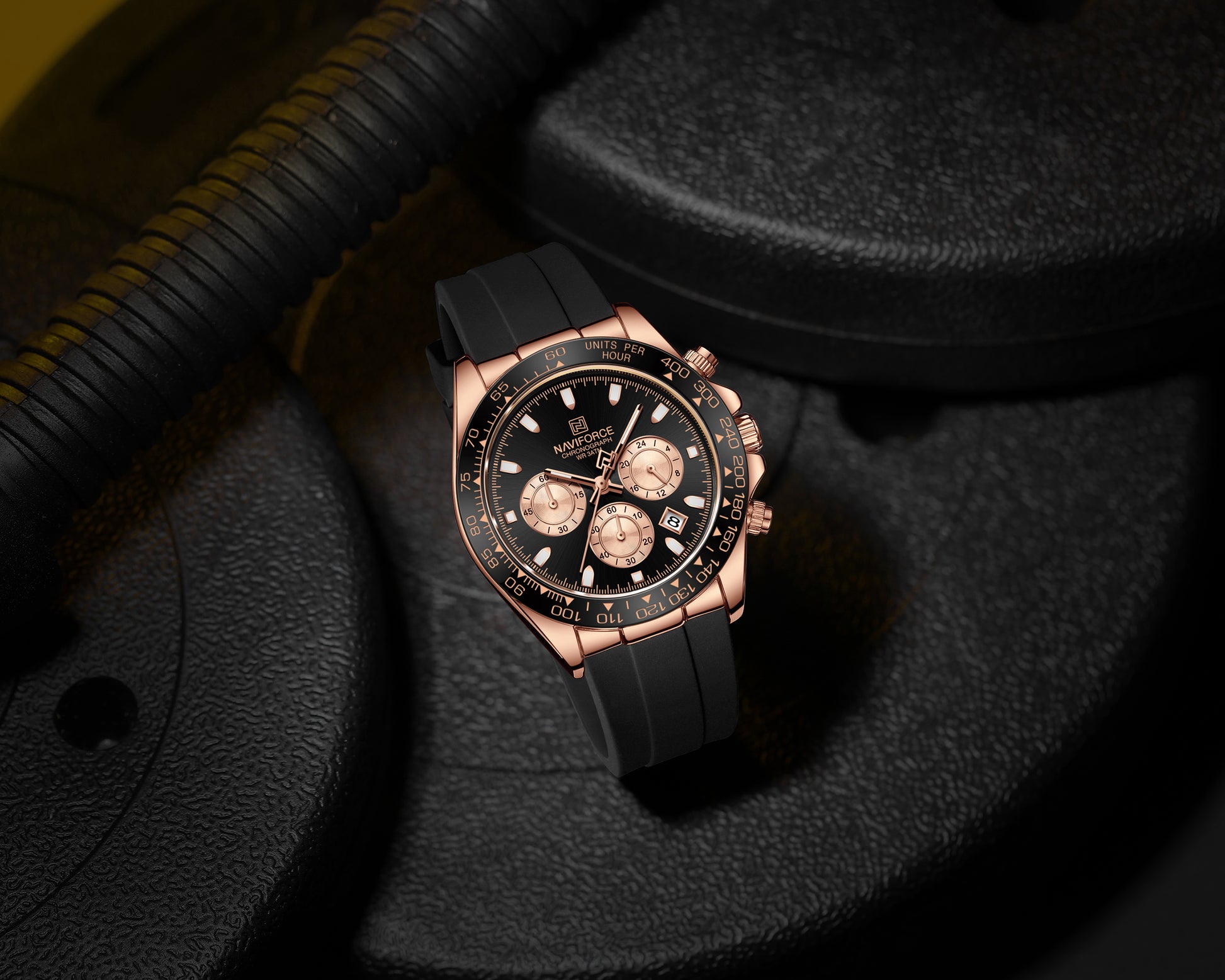 The Naviforce NF8054 Crafted with meticulous attention to detail, this timepiece is a game-changer in the industry. Its sleek racing-inspired bezel not only adds a touch of dynamism but also sets it apart from the crowd.