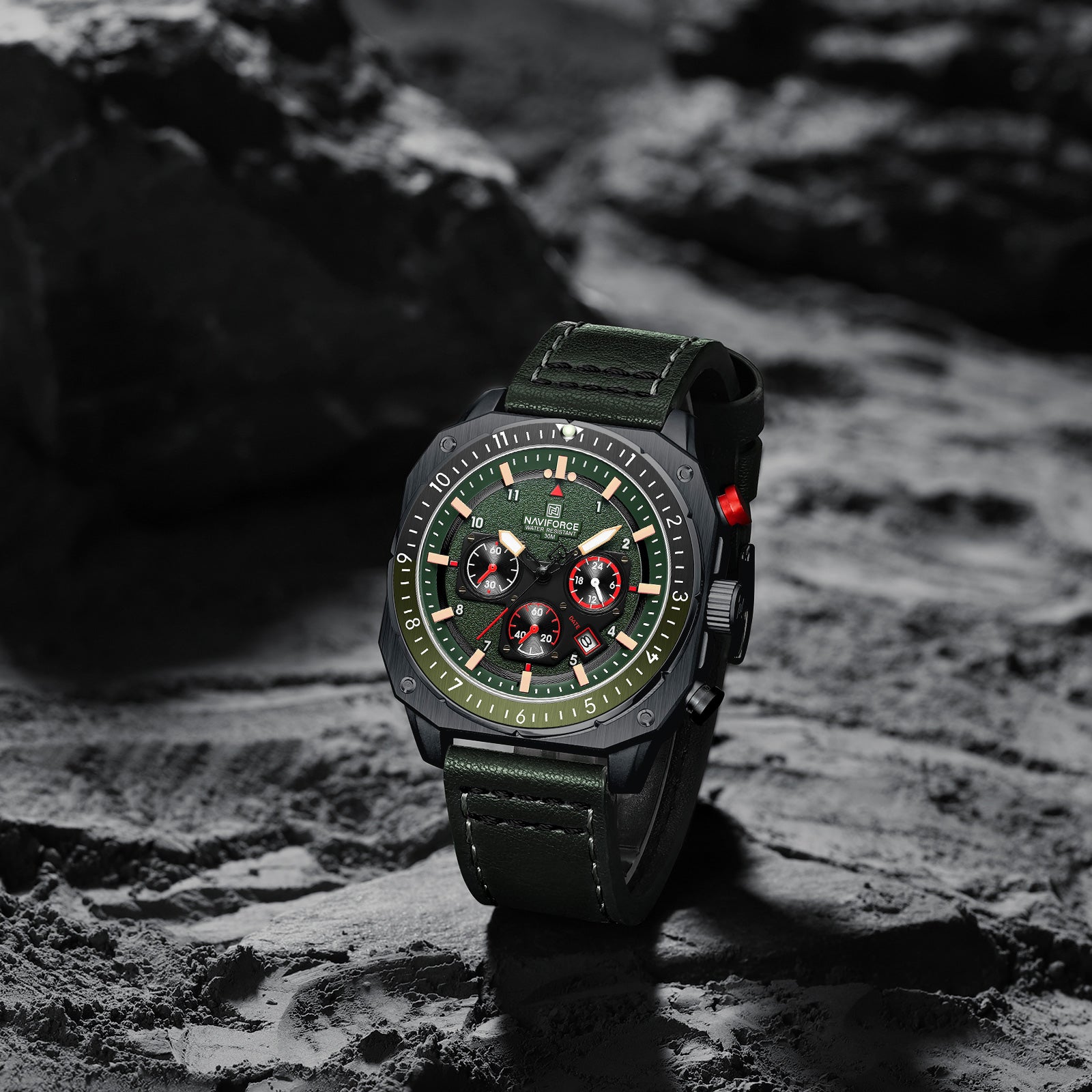 Naviforce NF8057 Green Leather Strap Analog Watch