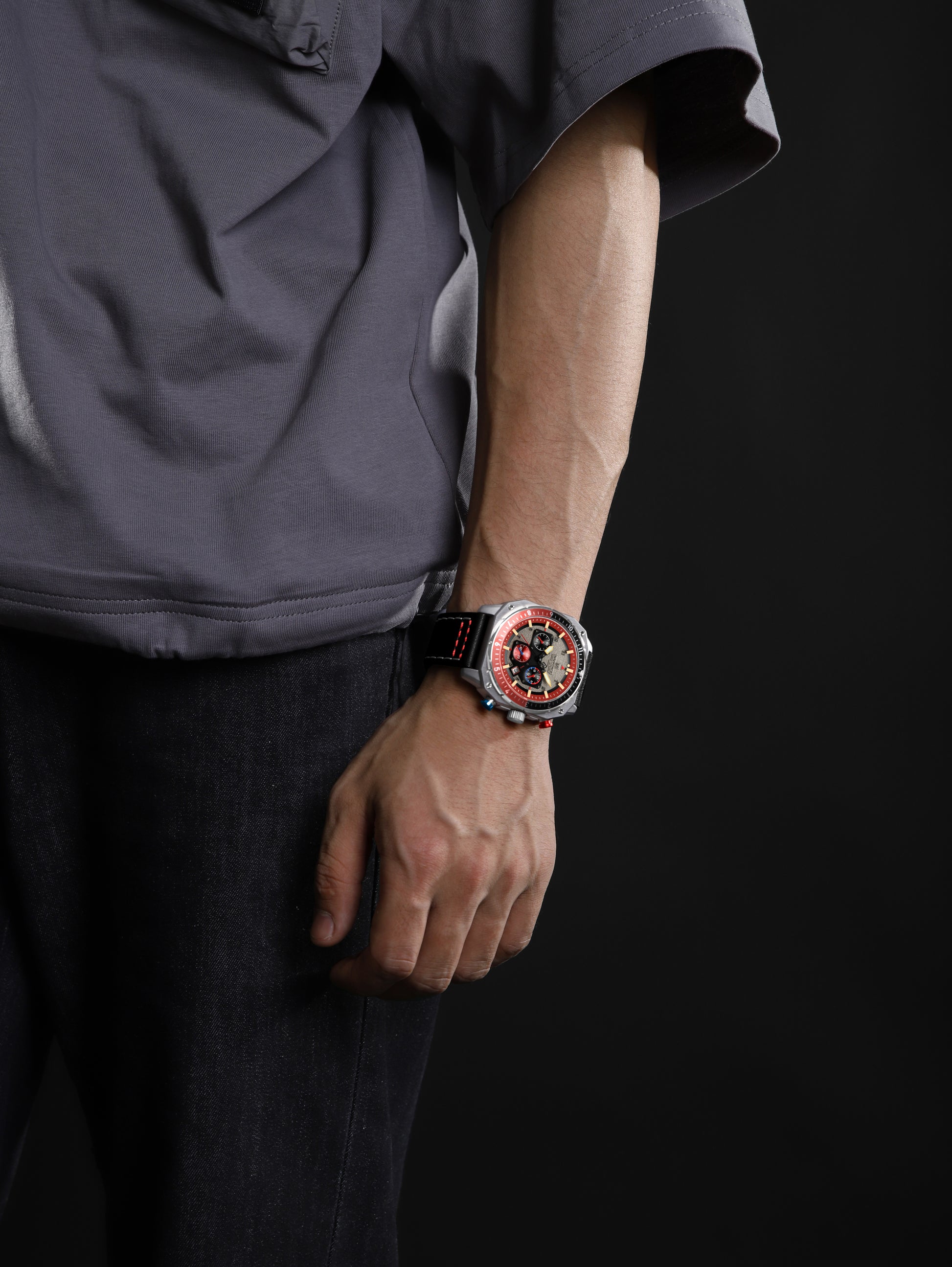 Ideal for globetrotters, the dual chronograph allows seamless multi-time zone readings, complemented by a date function and 24-hour display for precise timekeeping anywhere.