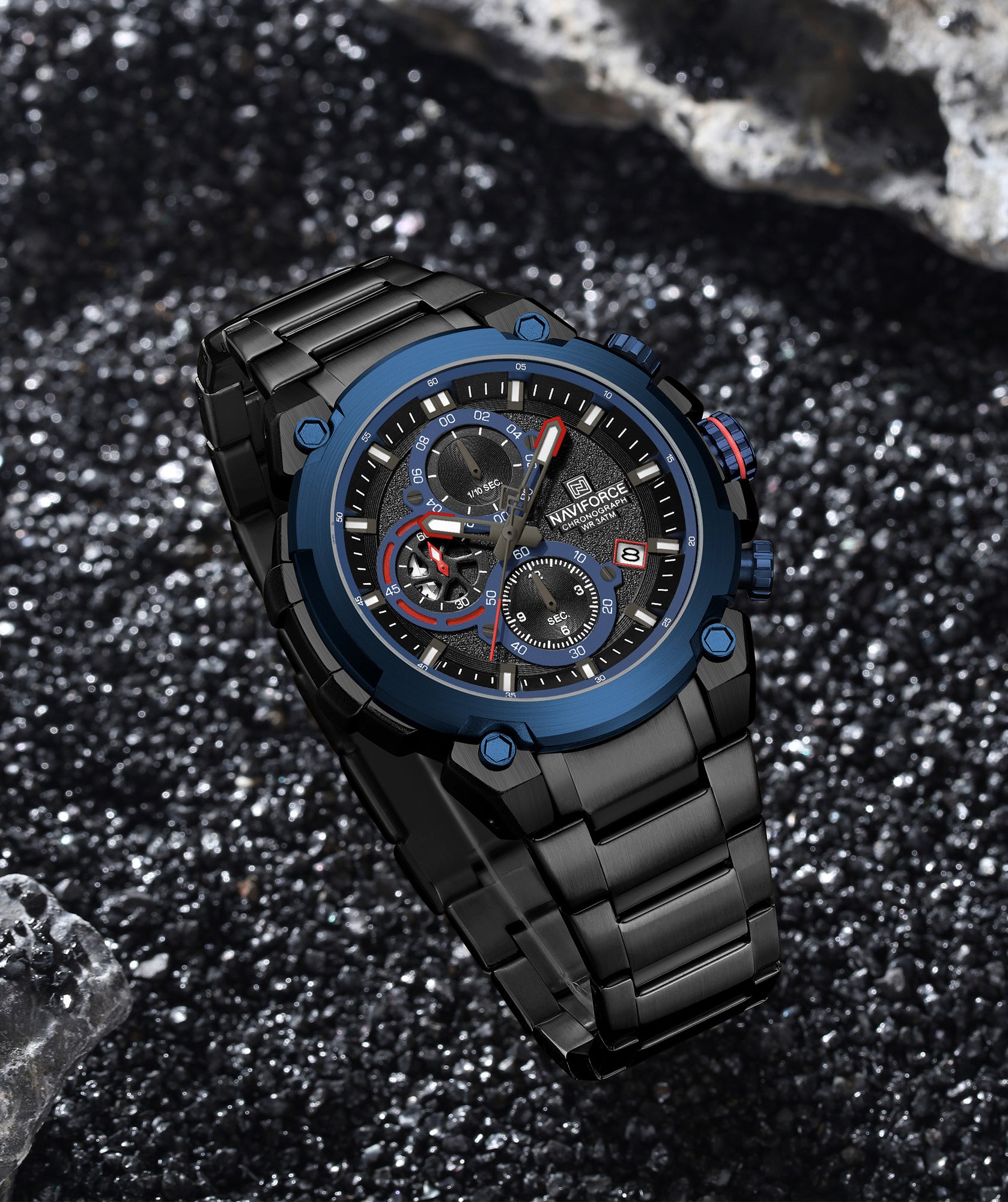 Command attention with the bold and powerful NAVIFORCE All-Black Chronograph Watch engineered for men who live with precision and purpose.
