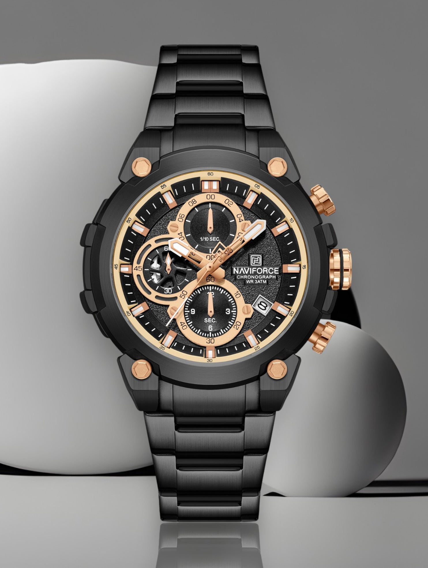 Command attention with the bold and powerful NAVIFORCE All-Black Chronograph Watch engineered for men who live with precision and purpose.