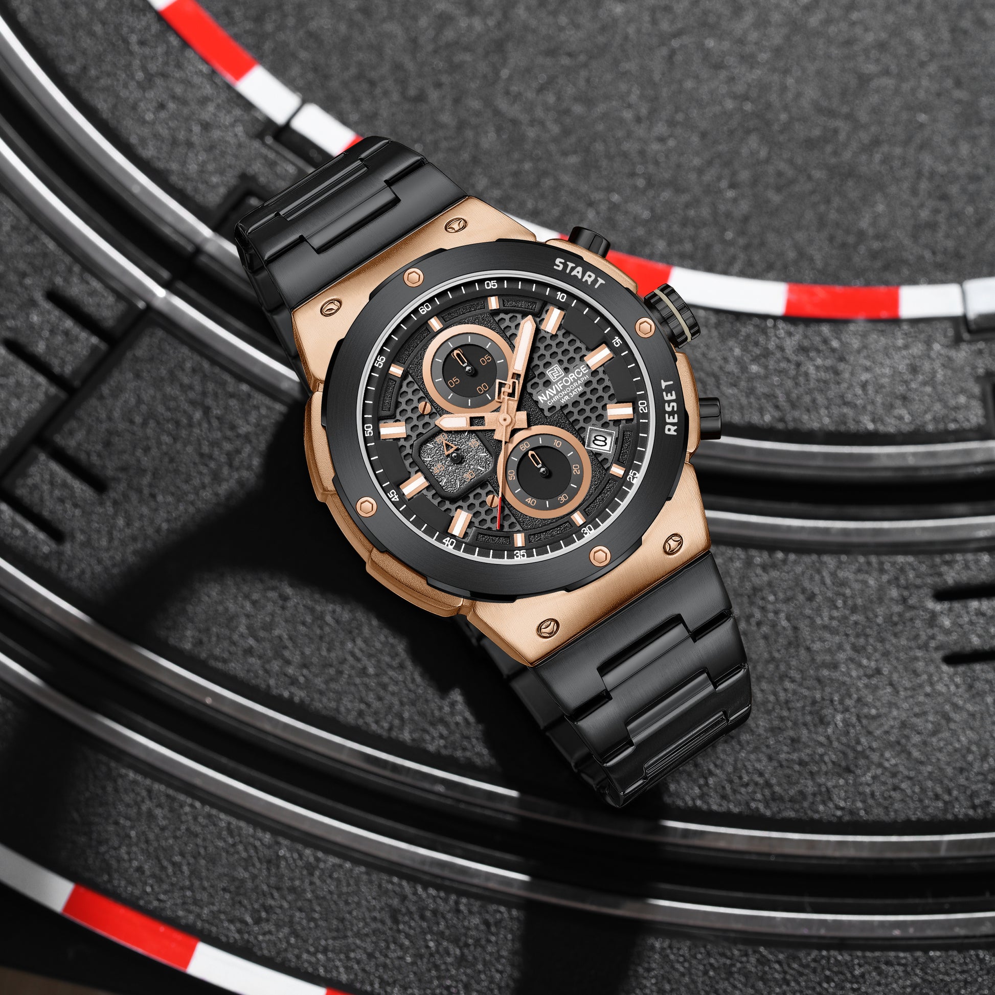 Designed for those who thrive in tough terrains and high-energy environments, this watch effortlessly merges tactical strength with premium style. Perfect for both rugged adventures and urban nights.