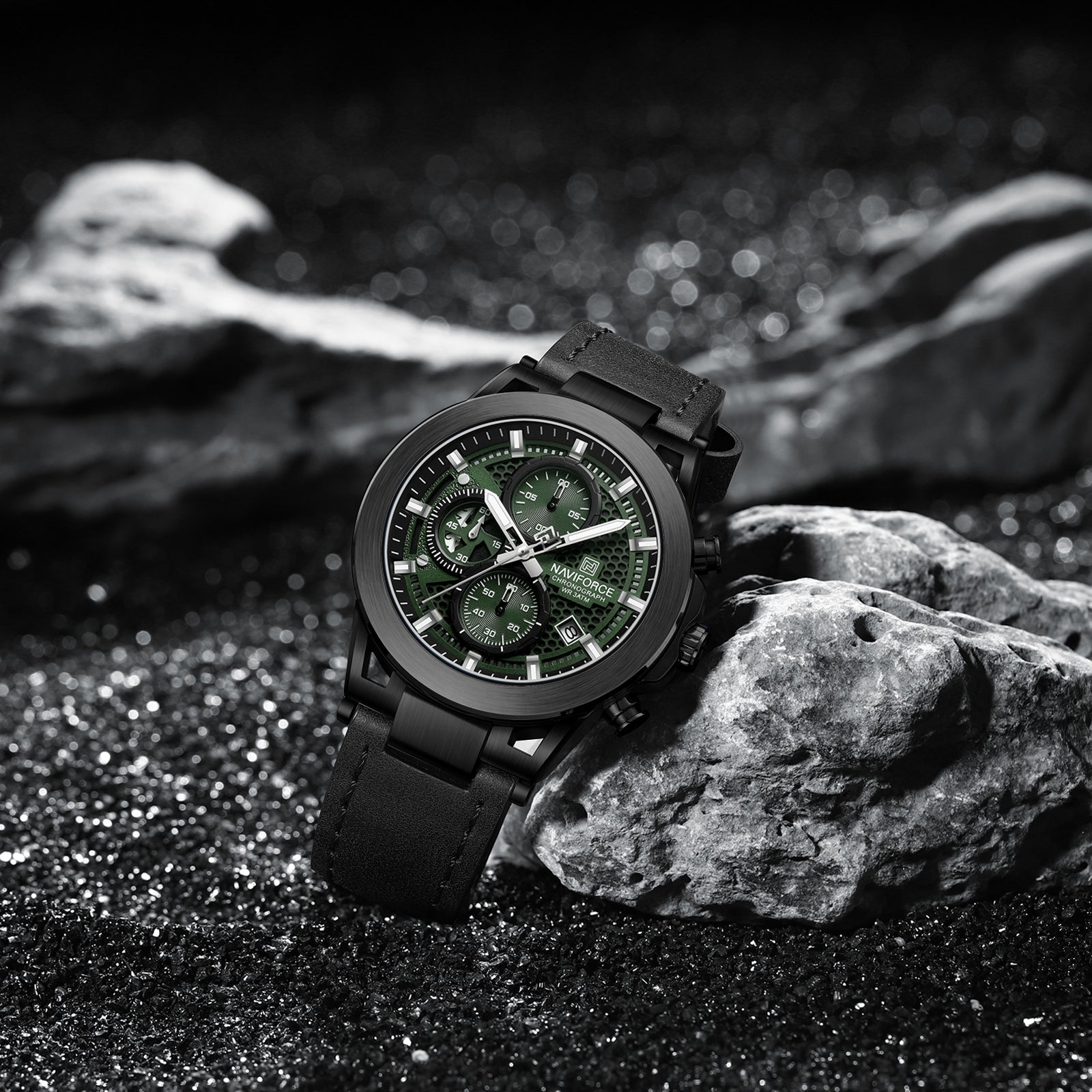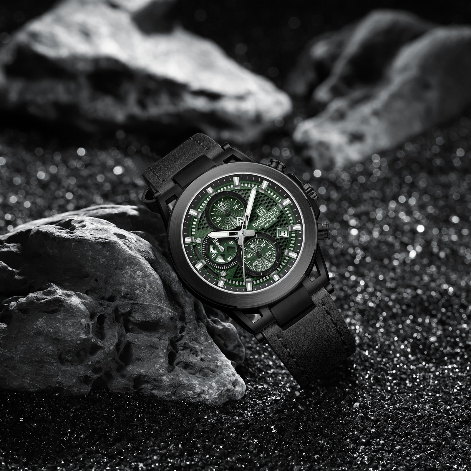 Naviforce NF8073 Unique Green Dial With Genuine Leather Analog Watch