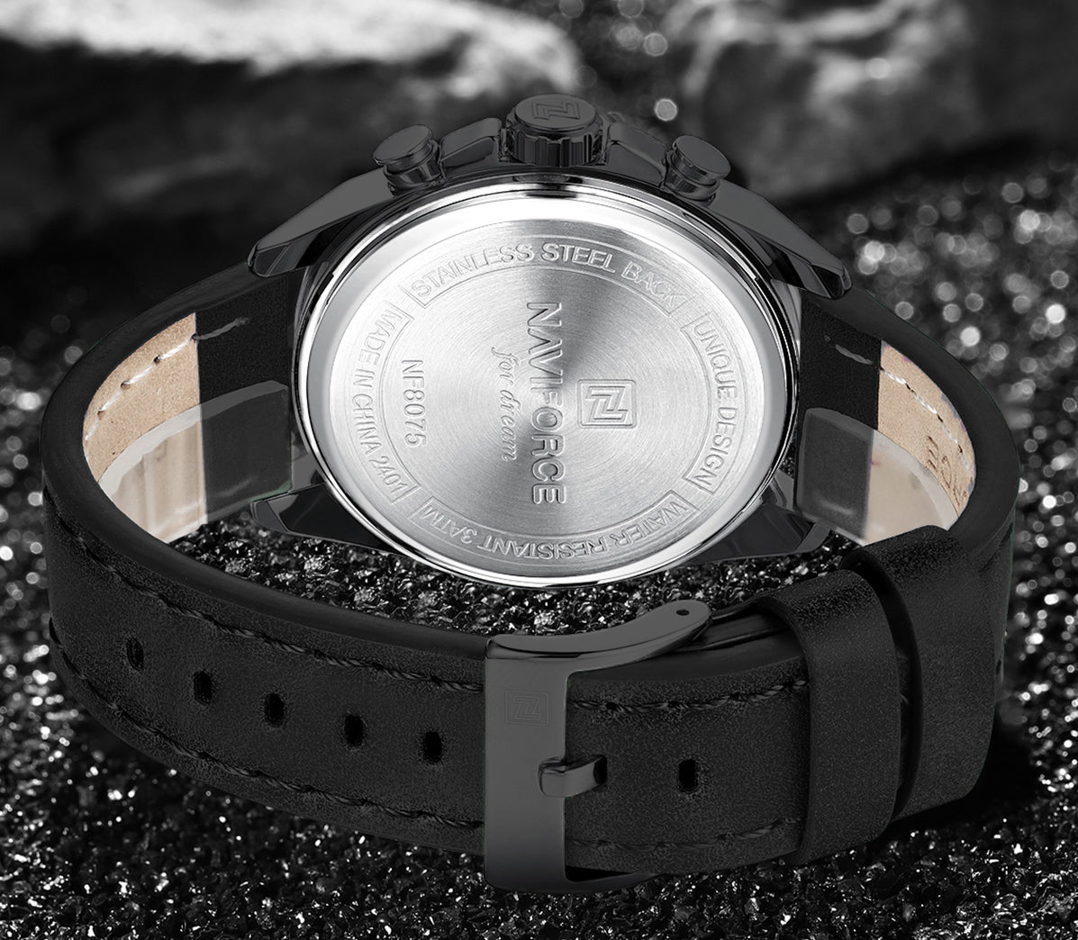 Unveil your edge with the NAVIFORCE Midnight Chronograph a timepiece engineered for those who thrive in precision and power.