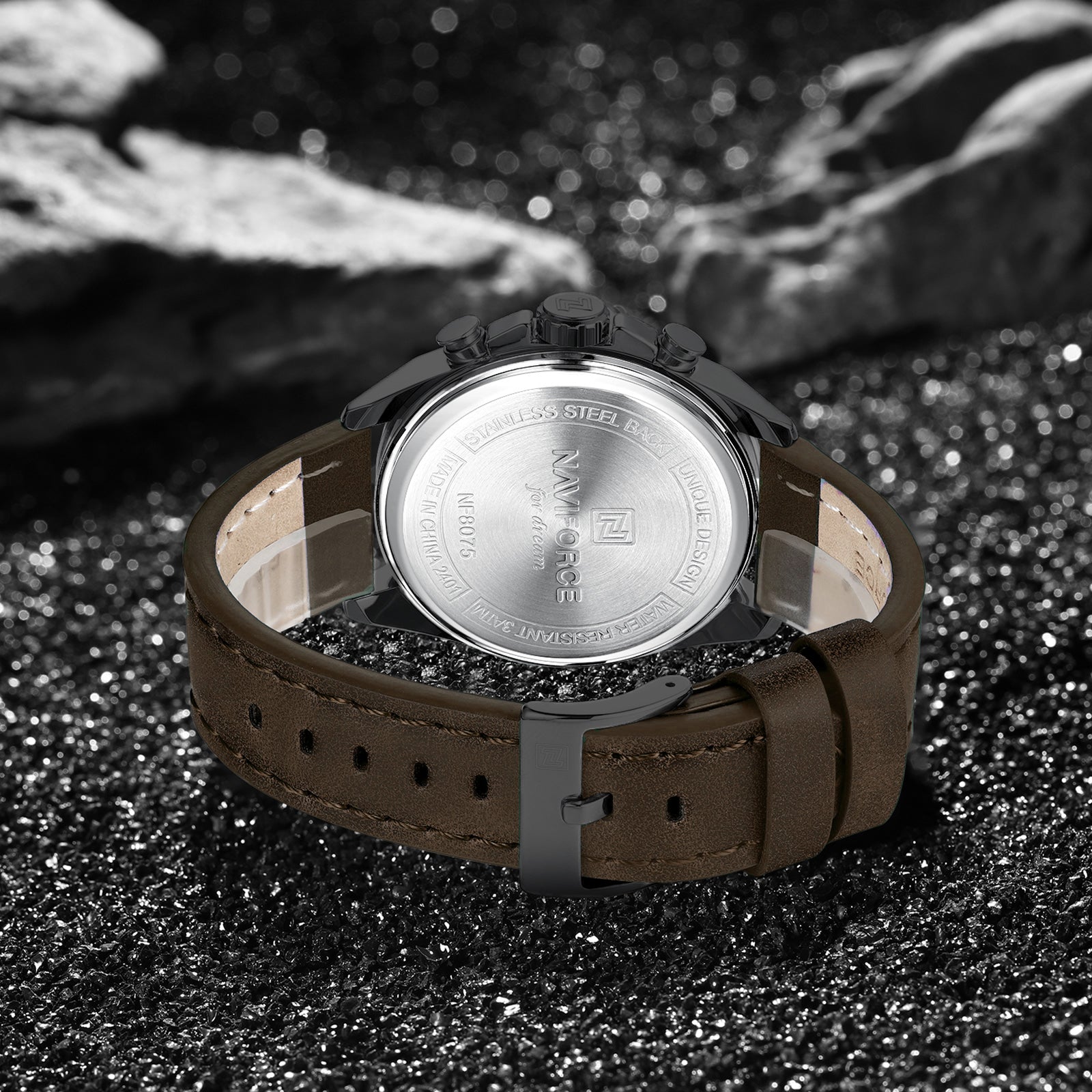 Unveil your edge with the NAVIFORCE Midnight Chronograph a timepiece engineered for those who thrive in precision and power.