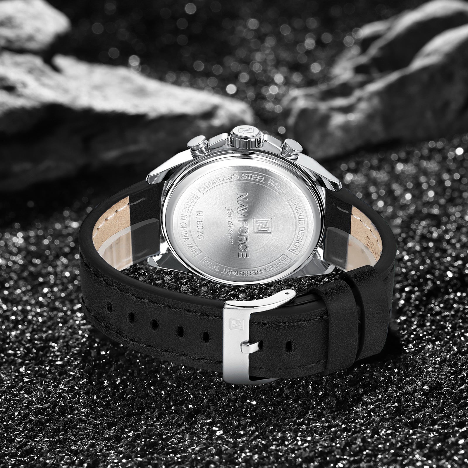 Unveil your edge with the NAVIFORCE Midnight Chronograph a timepiece engineered for those who thrive in precision and power.