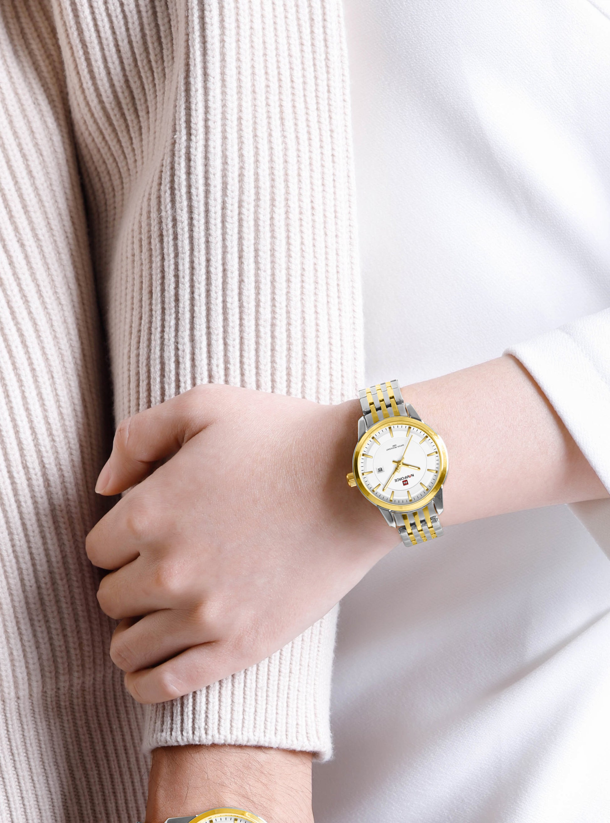 Naviforce NF9228L Silver-gold High Quality strap Analog Watch