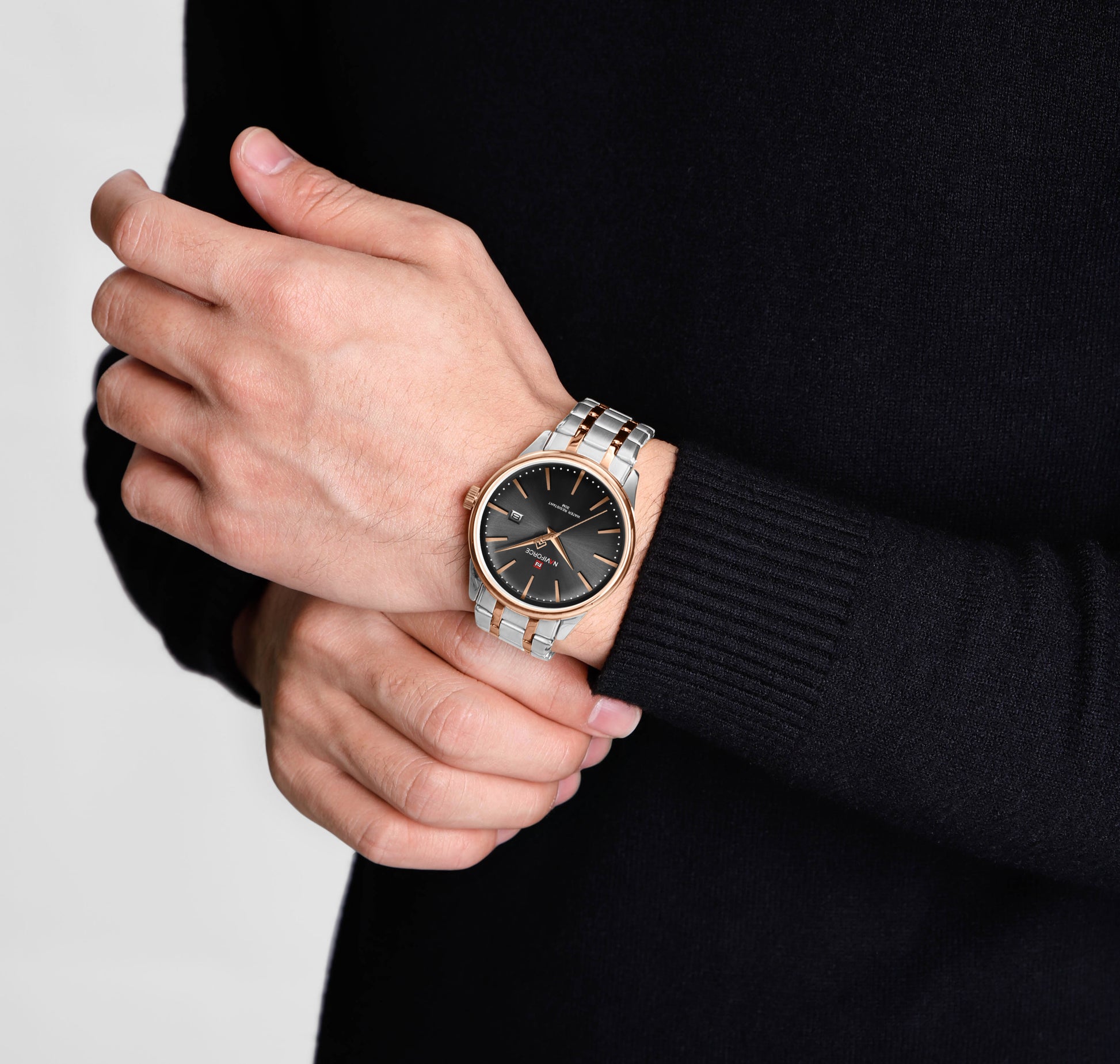 Its minimalist design style is suitable for various occasions. The simple and generous dial design, sword-shaped hands and bar-shaped hour markers complement each other, highlighting an extraordinary aura and attracting more attention.