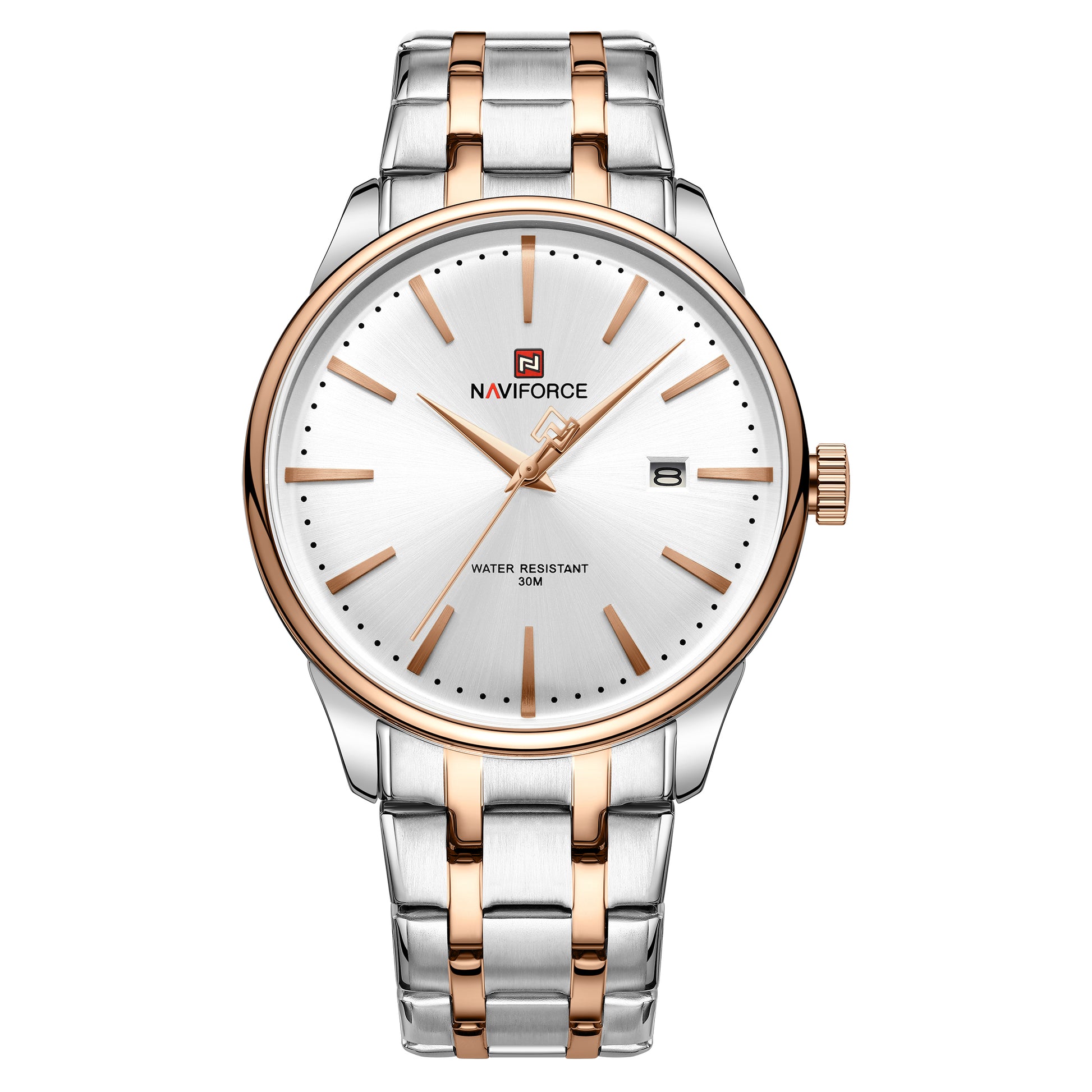 Naviforce NF9230 Silver White Gentle Elegant Calendar Analog Watch