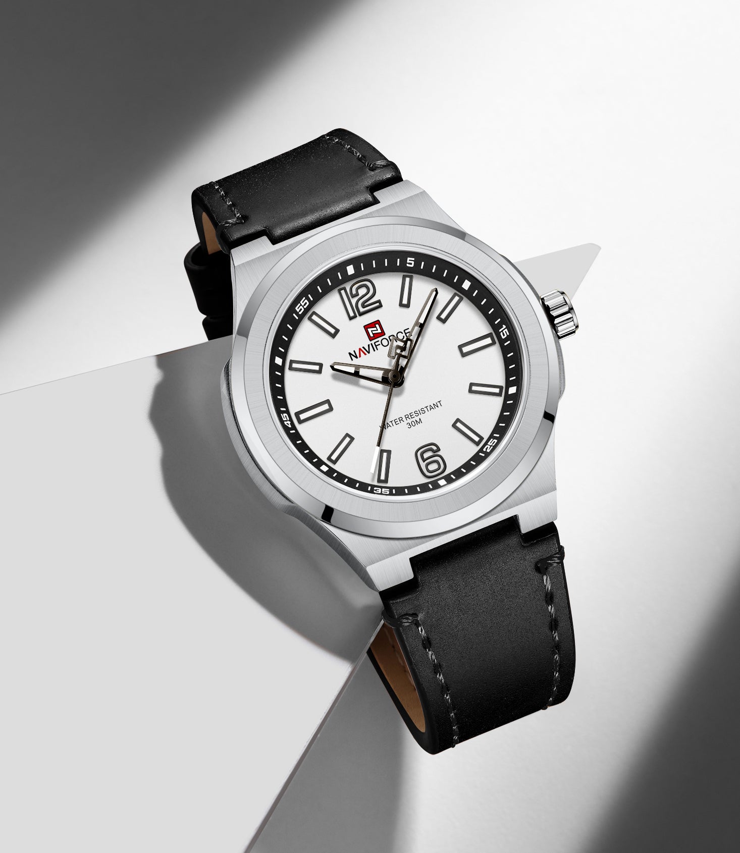 Naviforce NF9233 black and Silver with leather strap Analog Watch