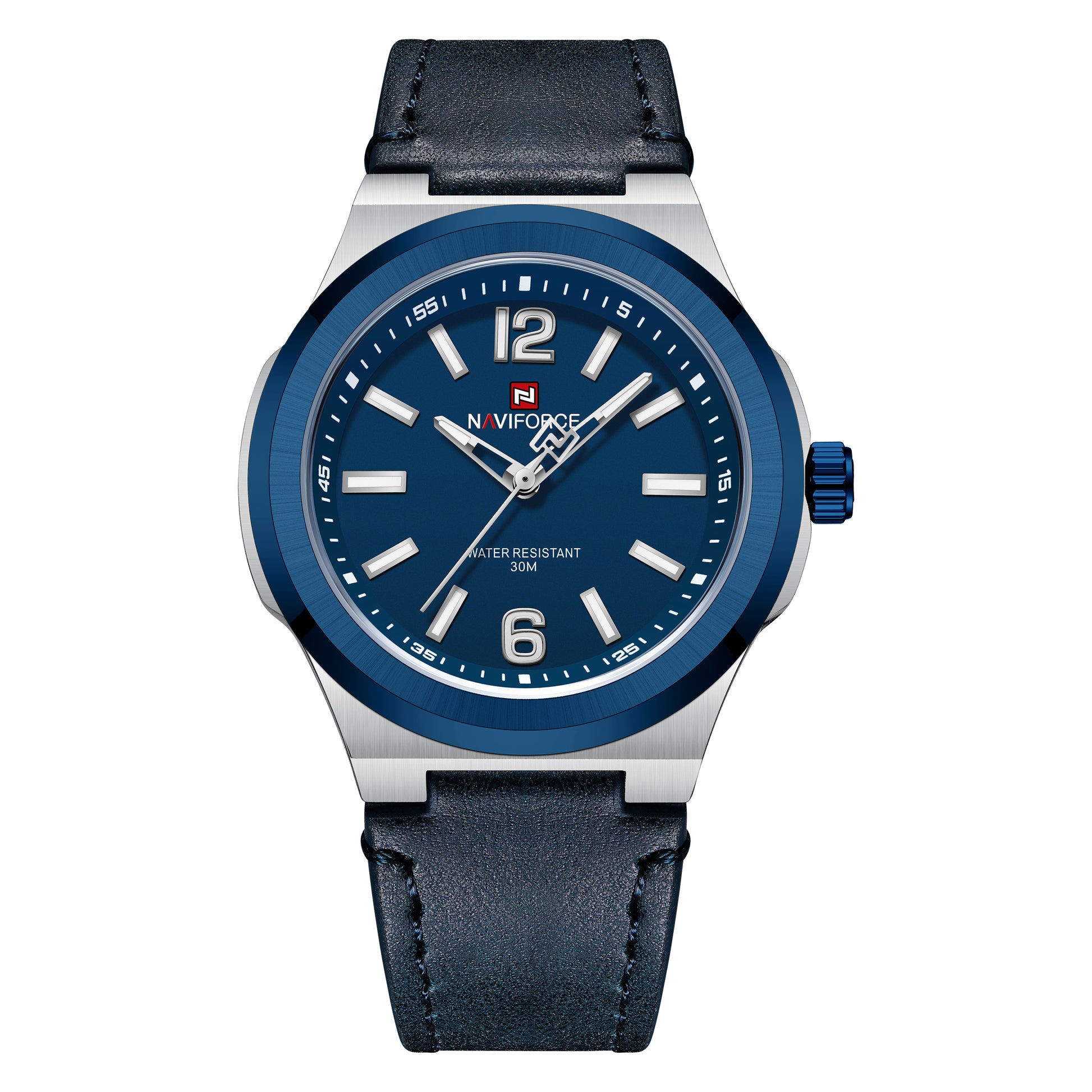Naviforce NF9233 Blue and silver with leather strap Analog Watch