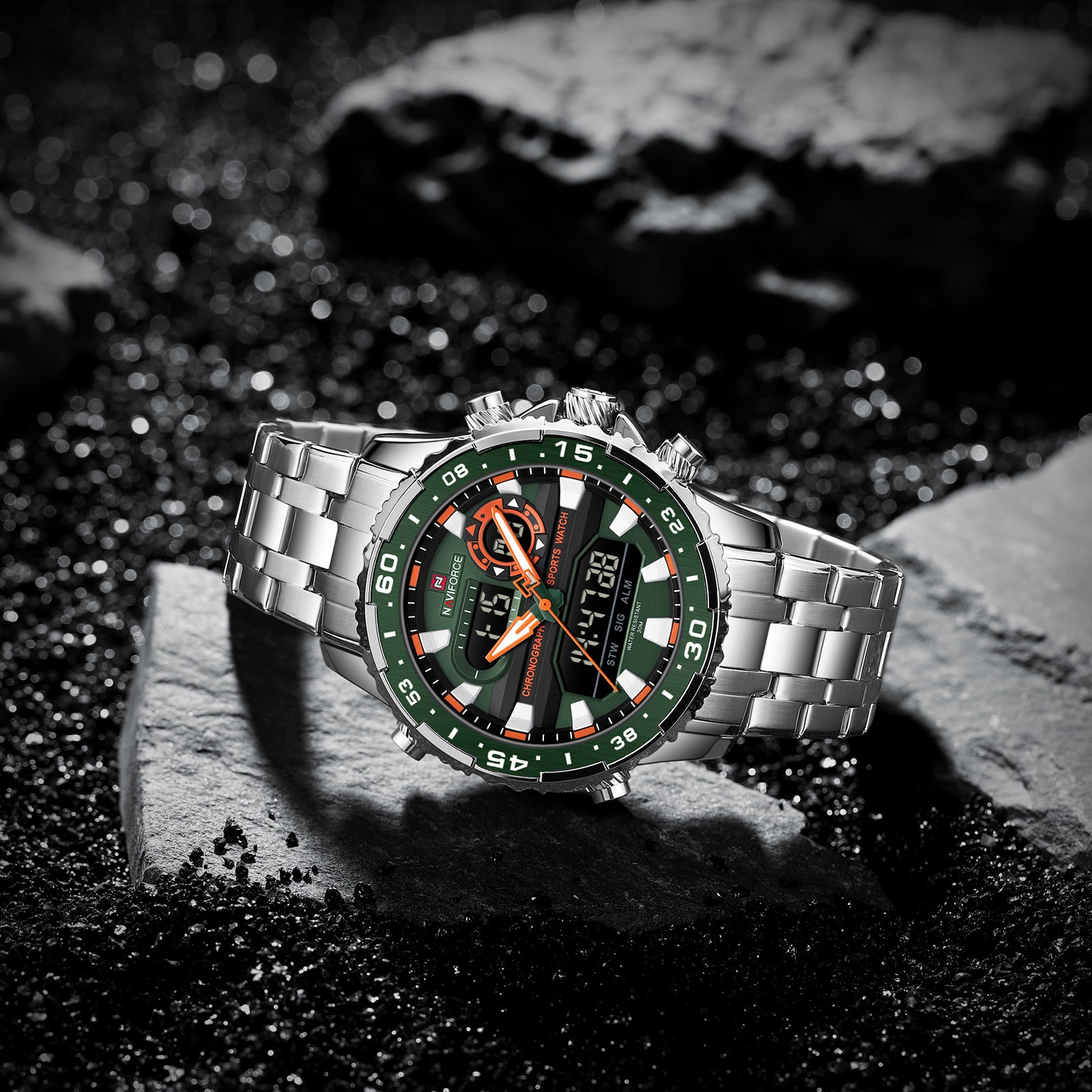 Naviforce NF9234 Versatile design Silver-Green color Analog-Digital Watch