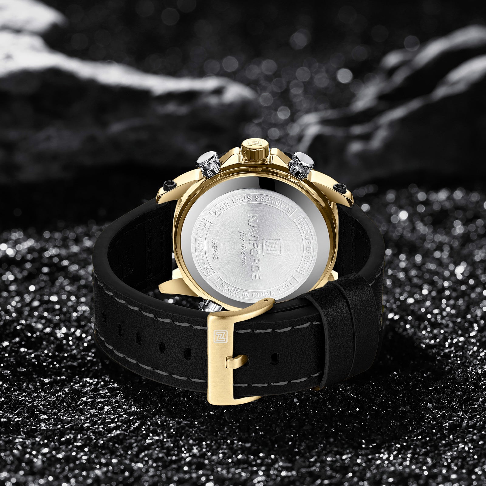 The NF9236’s round metal case and rivet design showcase a strong personality and style. It includes 30-meter water resistance, a comfortable leather strap, and a scratch-resistant crystal, ensuring long-term durability.