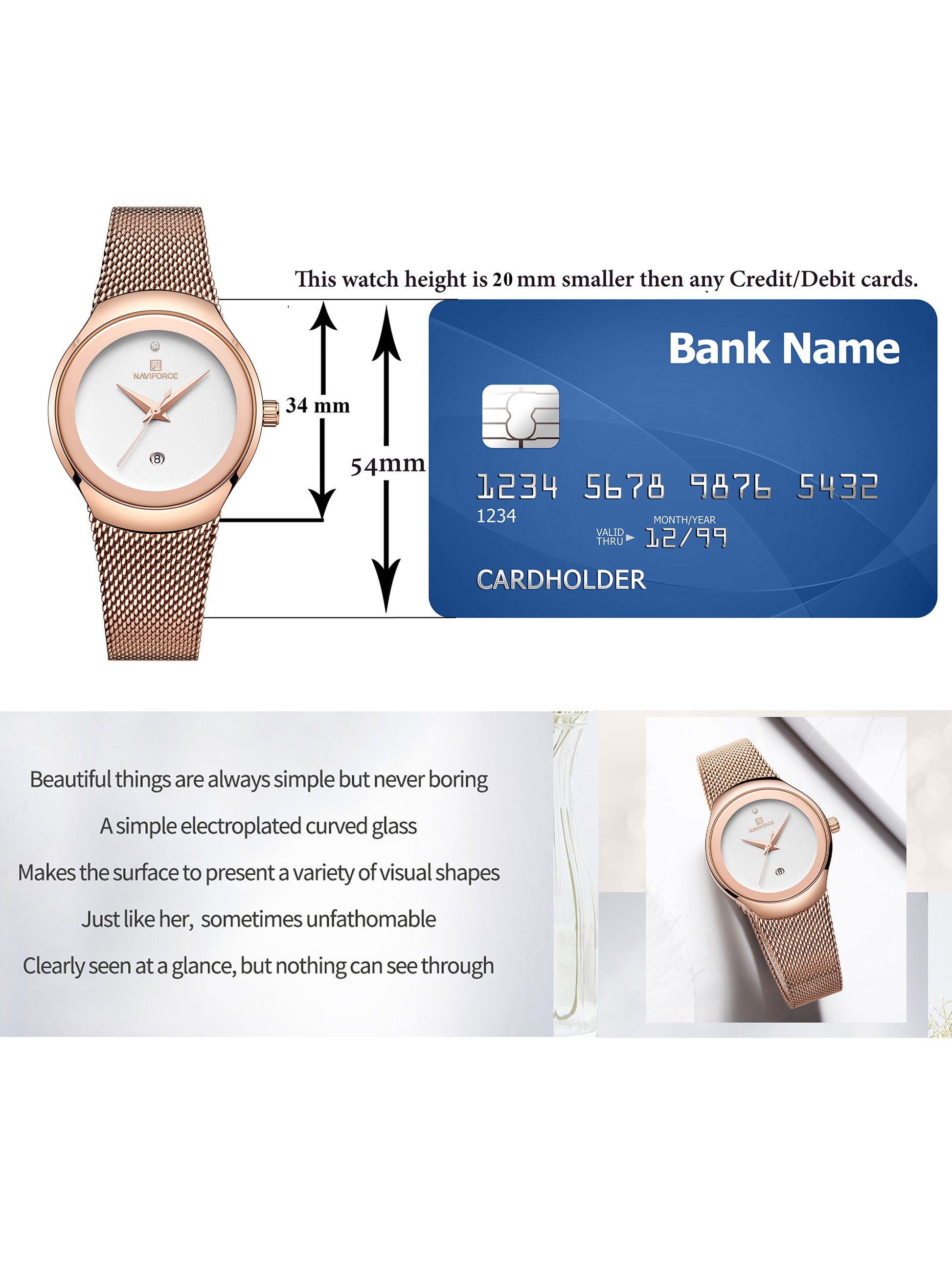 Elegant watches: Minimalist style watches are indispensable fashion items in ladies' wardrobes. Can be used as a gift choice for Mother's Day, Anniversary, Valentine's Day and birthday; Precise time keeping: The quartz movement provides precise and accurate time. High-quality batteries can provide strong power for watch; Waterproof: 30 meters (99 feet): The careful installation of stainless steel strap, high-strength glass and all spare parts is suitable for the water environment of daily use. But please remember to dry quickly to extend the service life; Durable material: The stainless steel watchband is comfortable to wear, the watch mirror is made of hardened mineral glass, which is abrasion-resistant and more scratch-resistant, and the environmentally friendly vacuum ion plating process; Occasion: A simple and elegant dress ladies watch, suitable for business occasions, leisure activities, outdoor travel, etc., can easily add fashion style to your daily life.