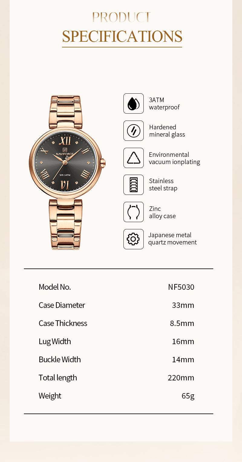 ● Affordable Luxury: Experience luxury without compromise. NF5030 blends stunning design with affordability, offering a timepiece that adds value to your style.